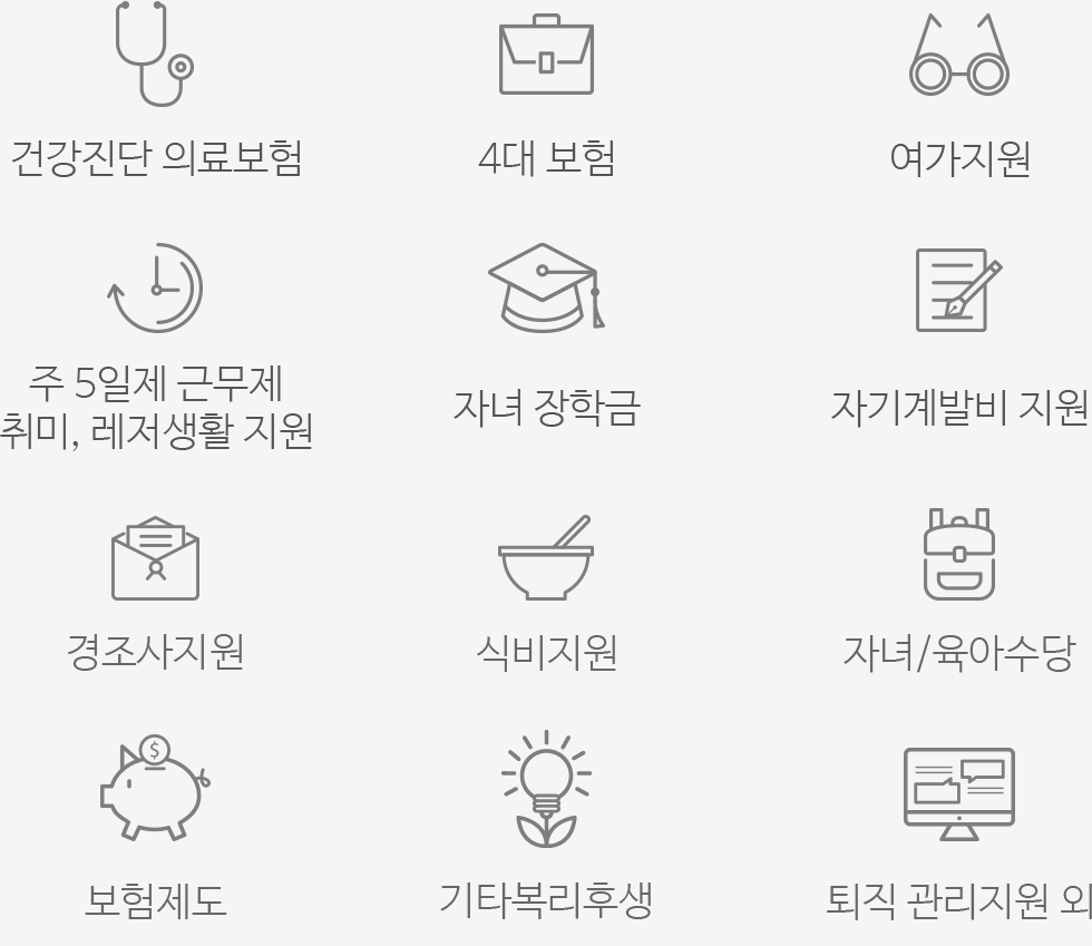 모든 임직원들이 행복한 삶을 추구할 수 있도록 뒷받침합니다.